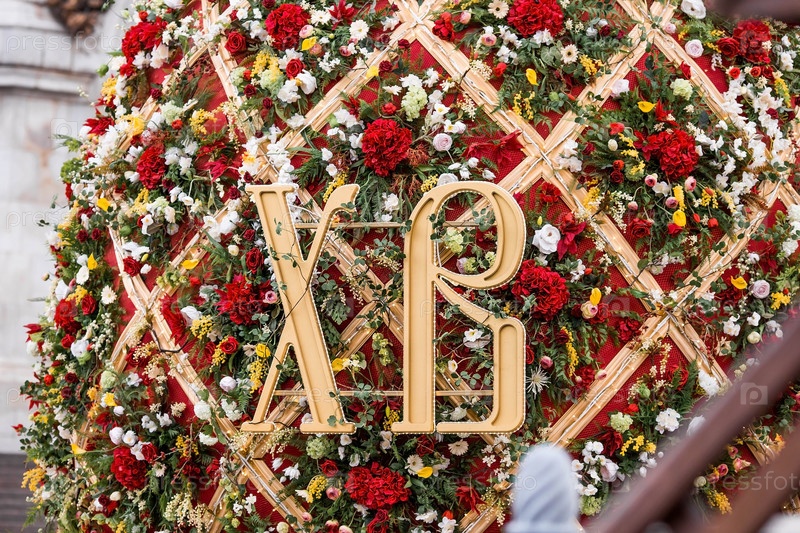 Пасхальная неделя в городе. Фестиваль "Пасхальный дар" Пасхальная инсталляция у Храма Христа Спасителя. Пасхальный декор на улицах города. Московские сезоны. Россия. Москва