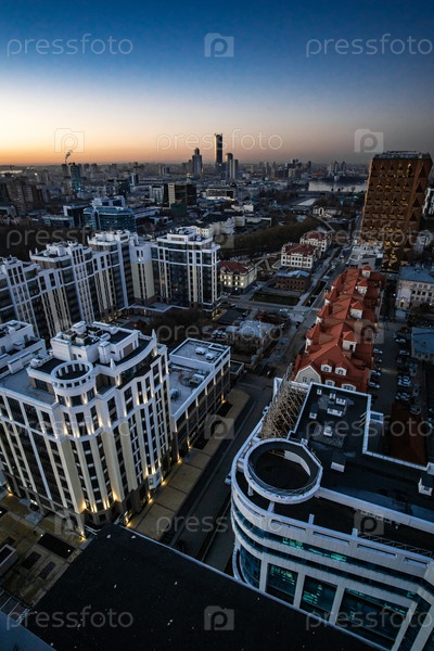 Рассветные облака над мегаполисом раннего заката в Екатеринбурге