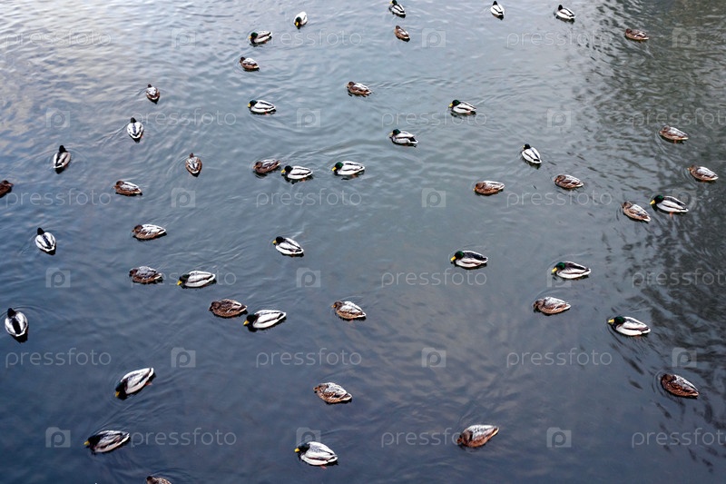 Утка с утятами плавает днем