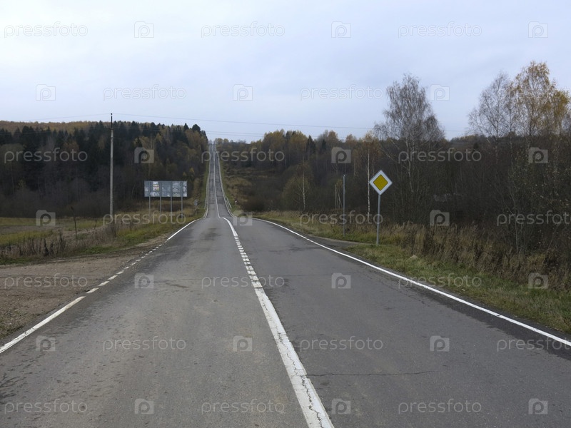 Асфальтированное шоссе осенью круто идет в гору