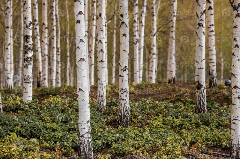 Фон стволов березы, текстура дерева. Березовая роща ранней весной в Москве у храма Христа Спасителя