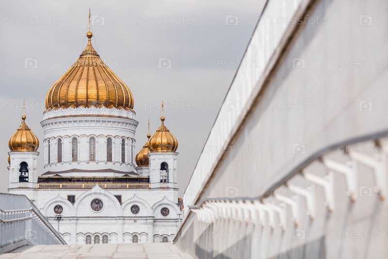 Русский православный собор — это собор Христа Спасителя в Москве в весенний день. Российская Федерация, Москва
