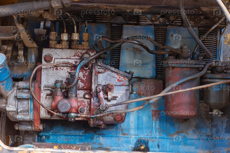 Дизельный двигатель старого трактора все еще исправно работает. Топливная система