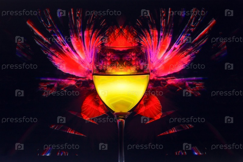 Стакан, наполненный жидкостью на ярком абстрактном фрактальном фоне
