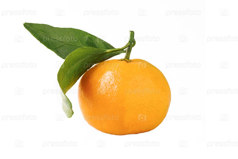 Свежий мандарин с веткой и зелеными листьями на белом фоне. Кислые цитрусовые