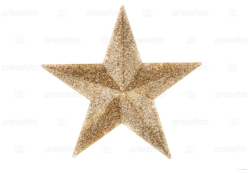 Бронзовая золотая рождественская звезда на белом фоне. Украшение для новогодней елки. Верхушка для елки
