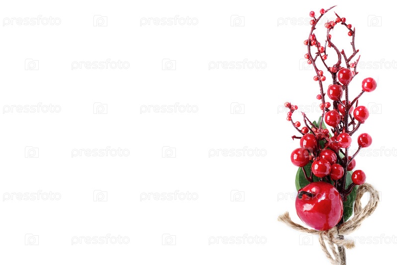 Еловые ветки с рождественским декором. Рождество, новогодняя концепция. Вид сверху, крупный план. Копировать пространство