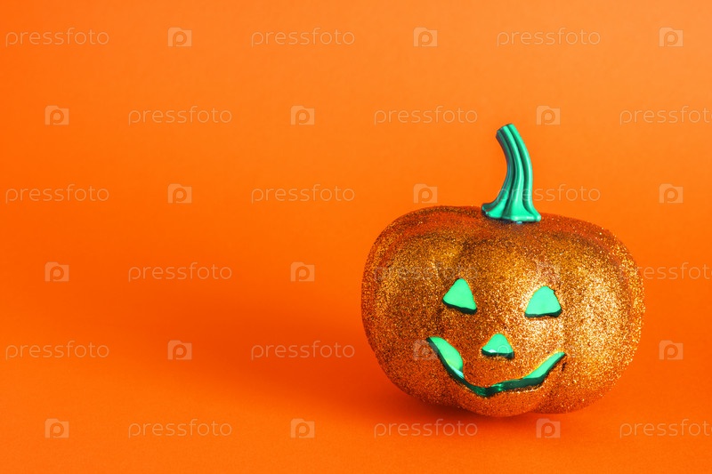 Тыква Хэллоуина, фонарь Джека, светящаяся изолированная на ярко-оранжевом фоне. Праздничная вечеринка в честь Хэллоуина