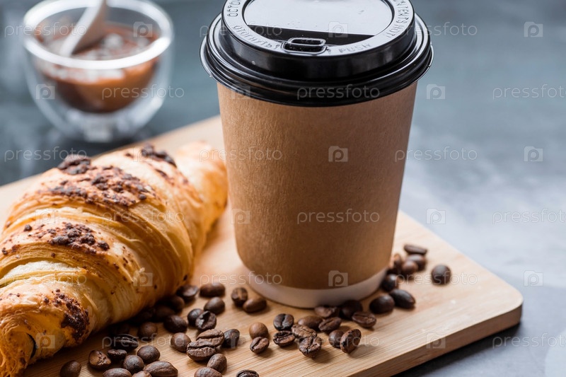 Вкусные свежеиспеченные круассаны с шоколадом и кофе на темном фоне. Французский завтрак. Вкусная выпечка крупным планом. Контекст пекарни с вкусным хлебом. Кондитерские изделия