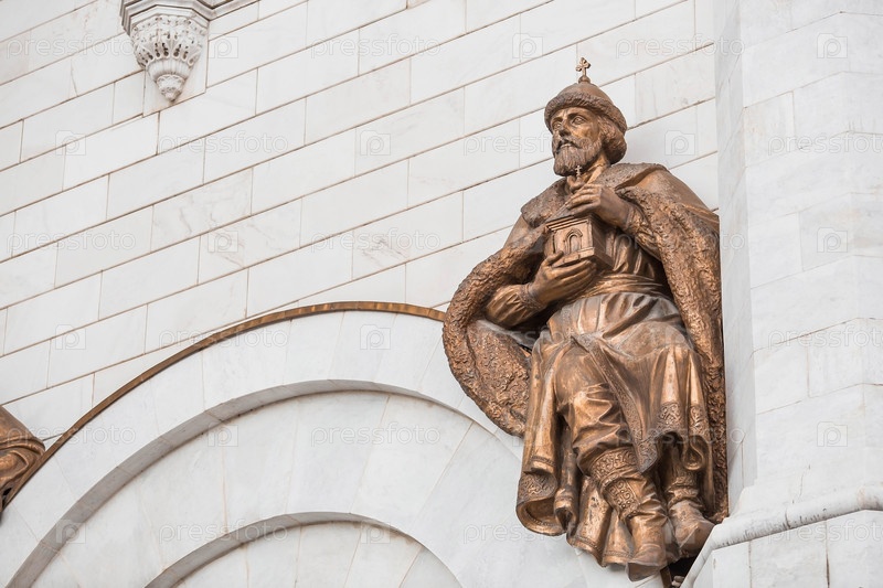 Русский православный собор — это собор Христа Спасителя в Москве в весенний день. Детали храма крупным планом. Российская Федерация, Москва