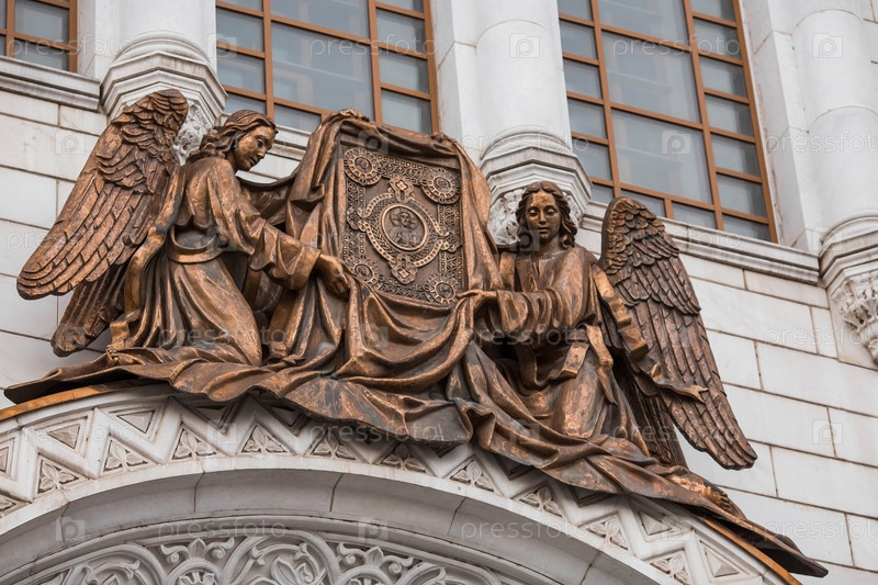 Русский православный собор — это собор Христа Спасителя в Москве в весенний день. Детали храма крупным планом. Российская Федерация, Москва