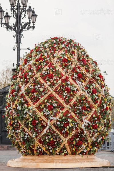 Пасхальная неделя в городе. Фестиваль "Пасхальный дар" Пасхальная инсталляция у Храма Христа Спасителя. Пасхальный декор на улицах города. Московские сезоны. Россия. Москва