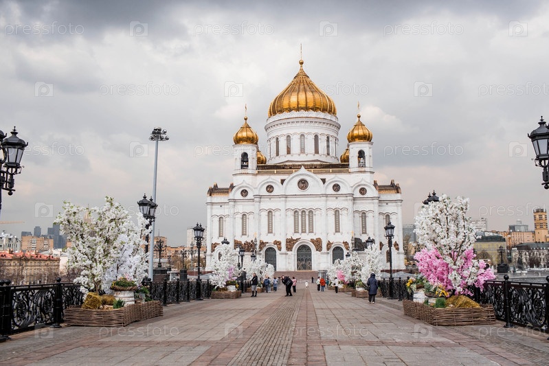 Русский православный собор — это собор Христа Спасителя в Москве в весенний день пасхальной недели. Российская Федерация, Москва