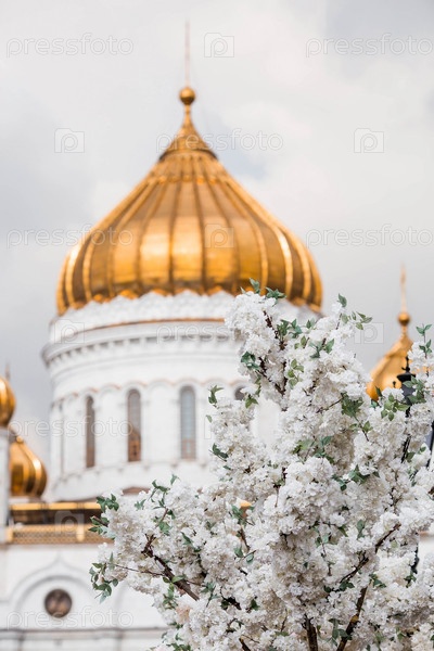 Русский православный собор — это собор Христа Спасителя в Москве в весенний день пасхальной недели. Российская Федерация, Москва