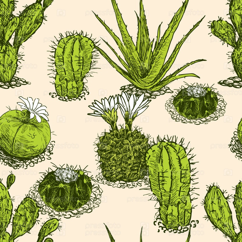 Узор из разных кактусов
