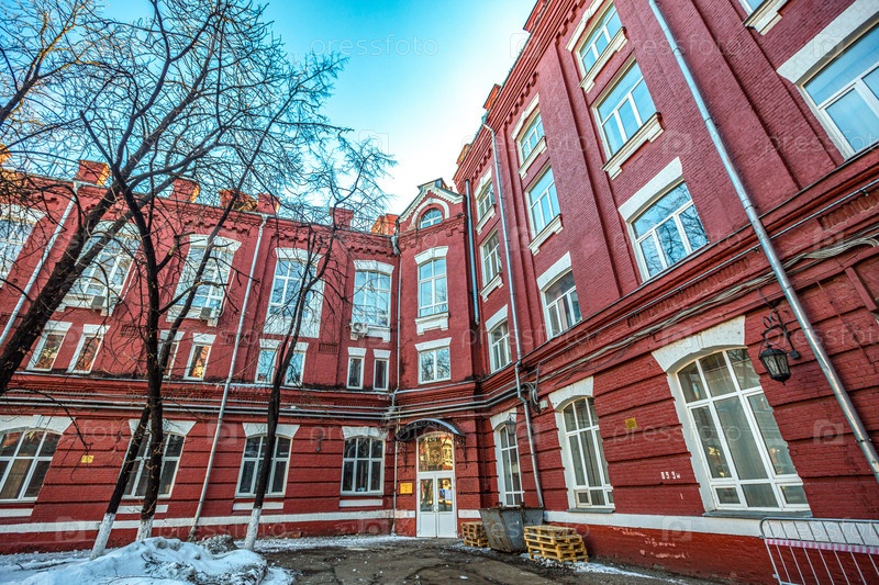 Промышленные здания старого завода из красного кирпича в Москве, Россия