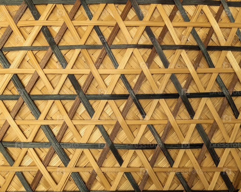 Плетеный фон из ротанга. Ленты из светлого дерева переплетаются с более темными, образуя красивый узор. Текстура плетения