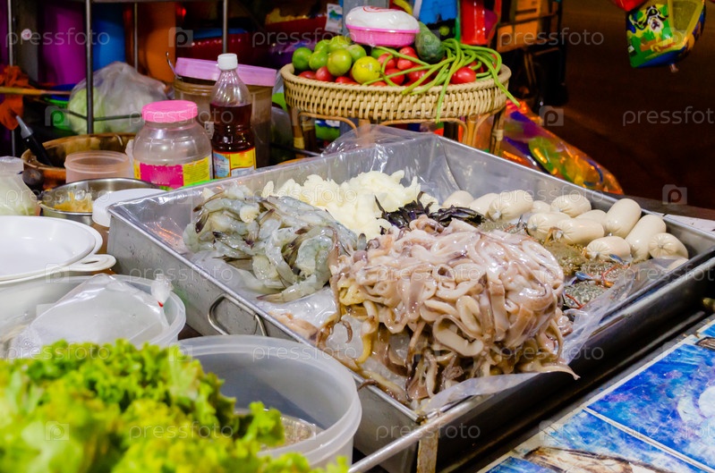 Ингредиенты для традиционных тайских блюд в уличной местной тайской закусочной