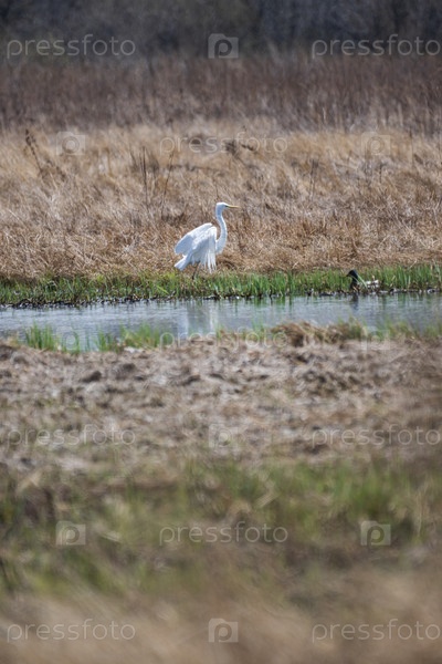 Большая белая цапля на болоте