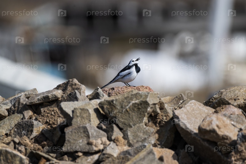 Белая трясогузка, одинокая птица на скале