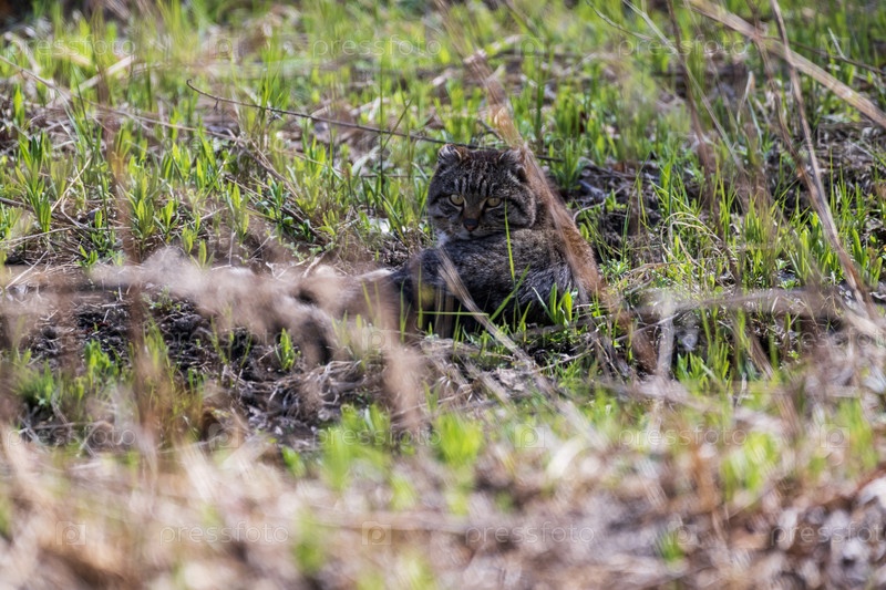 Дикий кот в траве