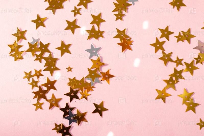 Золотые звезды на розовом фоне, шаблон поздравительной открытки с пустым местом для текста
