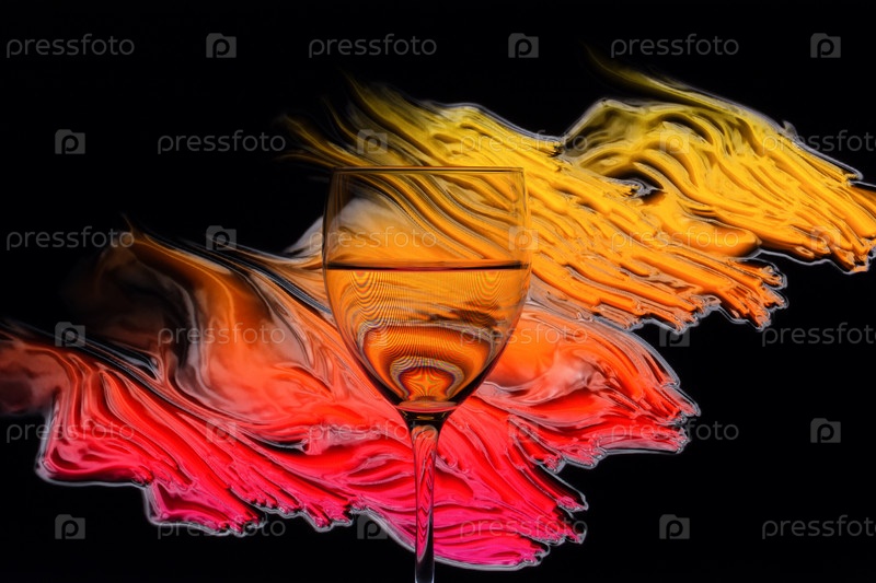 Стакан, наполненный жидкостью на ярком абстрактном фрактальном фоне