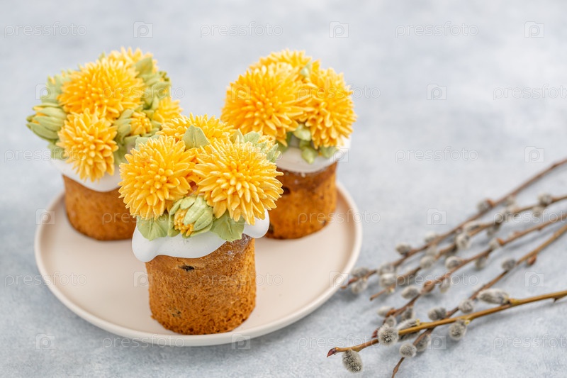 Пасхальный кулич на светлом фоне, крупный план, традиционное угощение. Пасха