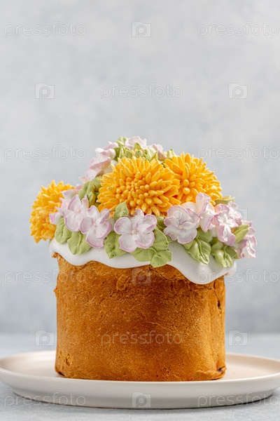 Пасхальный кулич на светлом фоне, крупный план, традиционное угощение. Пасха