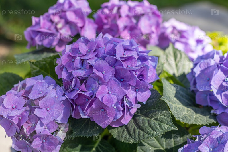 Цветок гортензии. крупный план фиолетовой гортензии в саду. Букет гортензий