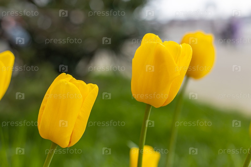 Желтые тюльпаны, цветущие весной, цветочный фон боке, пастельные и мягкие цветочные открытки, избирательный фокус