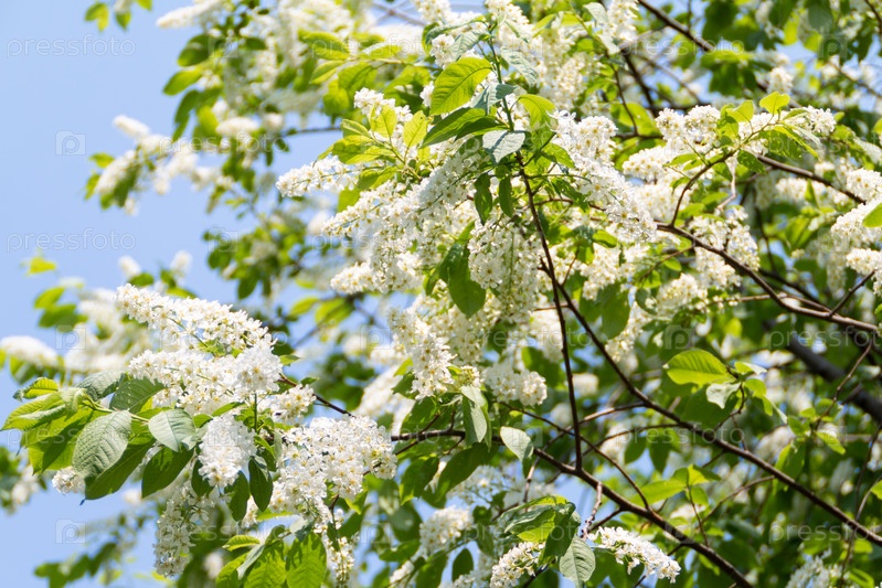 Цветущая черемуха, природный фон