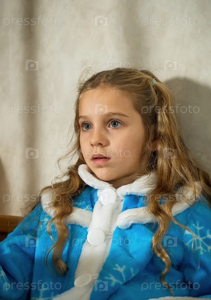 Блондинка с большими глазами в голубом костюме Снегурочки. В ожидании Рождества, Деда Мороза и новогоднего чуда