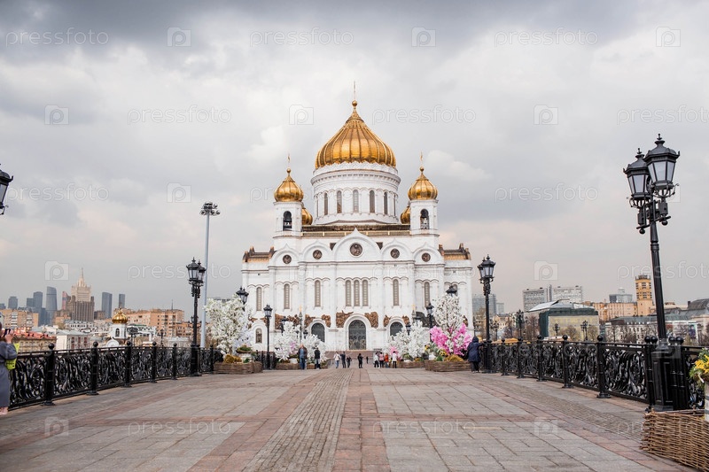 Русский православный собор — это собор Христа Спасителя в Москве в весенний день пасхальной недели. Российская Федерация, Москва