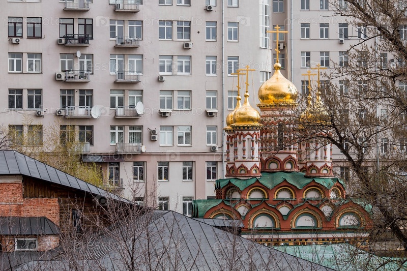 МОСКВА, РОССИЯ. Церковь Николая Чудотворца на Берсеневской набережной. Вид на храм с Патриаршего моста