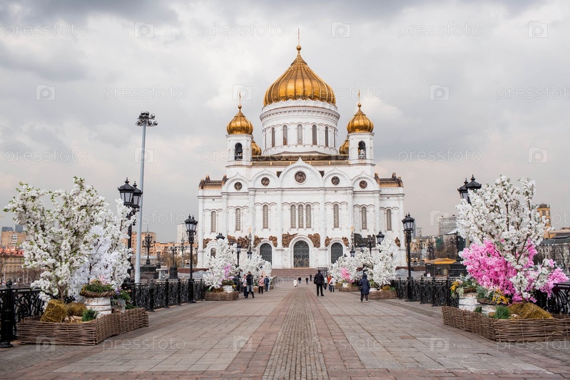 Русский православный собор — это собор Христа Спасителя в Москве в весенний день пасхальной недели. Российская Федерация, Москва