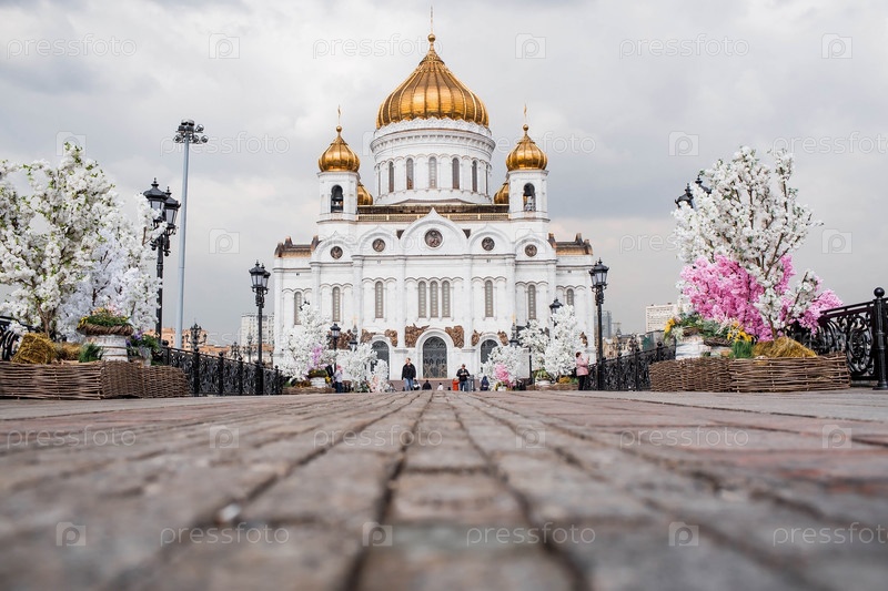 Русский православный собор — это собор Христа Спасителя в Москве в весенний день пасхальной недели. Российская Федерация, Москва