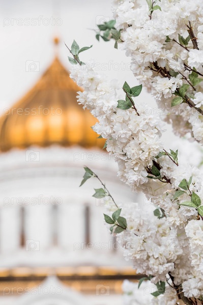 Русский православный собор — это собор Христа Спасителя в Москве в весенний день пасхальной недели. Российская Федерация, Москва