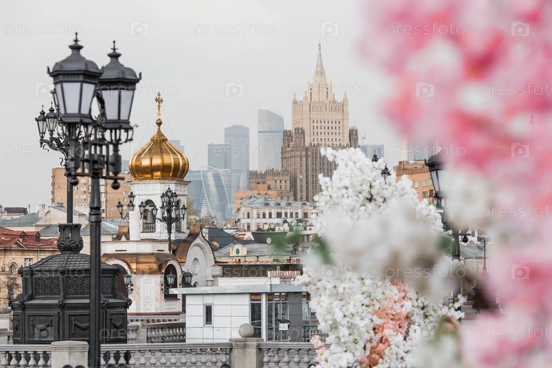 Русский православный собор — это собор Христа Спасителя в Москве в весенний день пасхальной недели. Российская Федерация, Москва