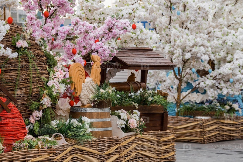 Пасхальная неделя в городе. Фестиваль "Пасхальный дар" Пасхальная инсталляция у Храма Христа Спасителя. Пасхальный декор на улицах города. Московские сезоны. Россия. Москва