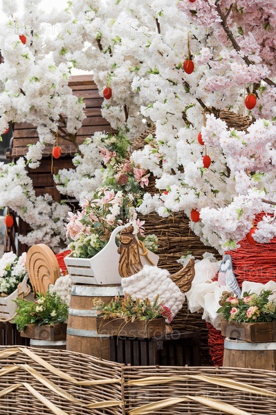 Пасхальная неделя в городе. Фестиваль "Пасхальный дар" Пасхальная инсталляция у Храма Христа Спасителя. Пасхальный декор на улицах города. Московские сезоны. Россия. Москва