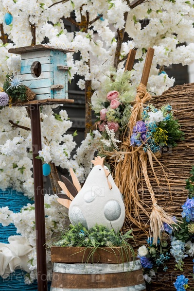 Пасхальная неделя в городе. Фестиваль "Пасхальный дар" Пасхальная инсталляция у Храма Христа Спасителя. Пасхальный декор на улицах города. Московские сезоны. Россия. Москва