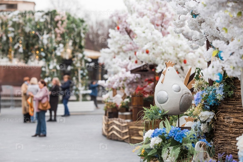 Пасхальная неделя в городе. Фестиваль "Пасхальный дар" Пасхальная инсталляция у Храма Христа Спасителя. Пасхальный декор на улицах города. Московские сезоны. Россия. Москва