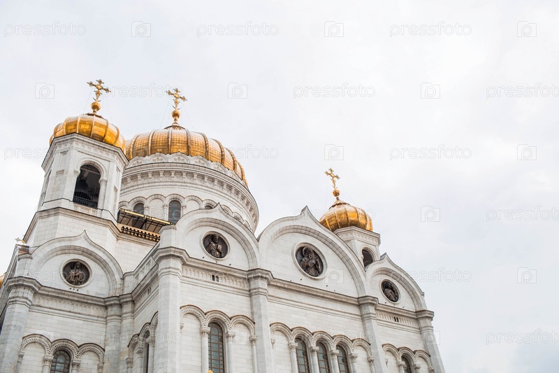 Русский православный собор — это собор Христа Спасителя в Москве в весенний день. Российская Федерация, Москва