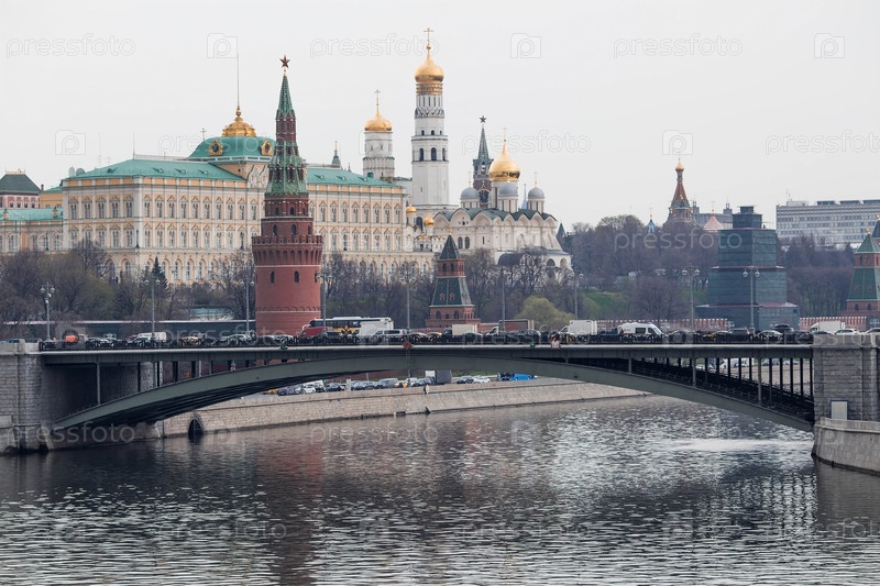 МОСКВА, Россия - 18 апреля 2023 г.: Вид на Москву в весенний день. столица России. Большой Кремлевский Дворец. Кремлевская набережная. Москва-река. Популярная туристическая достопримечательность