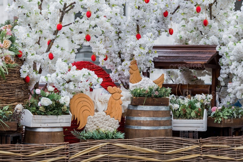 Пасхальная неделя в городе. Фестиваль "Пасхальный дар" Пасхальная инсталляция у Храма Христа Спасителя. Пасхальный декор на улицах города. Московские сезоны. Россия. Москва