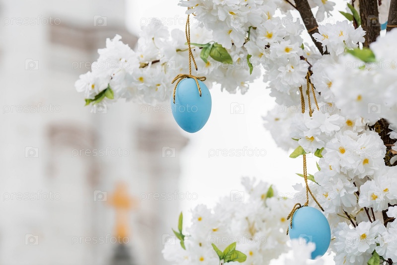 Пасхальная неделя в городе. Фестиваль "Пасхальный дар" Пасхальная инсталляция у Храма Христа Спасителя. Пасхальный декор на улицах города. Московские сезоны. Россия. Москва