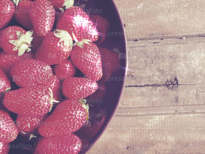 Клубника на тарелке, деревянный фон. Темная керамическая посуда и вкусная красная крупная садовая клубника. Здоровое питание, витамины и вегетарианская диета. Натюрморт с едой. Скопируйте пространство. Плоская планировка