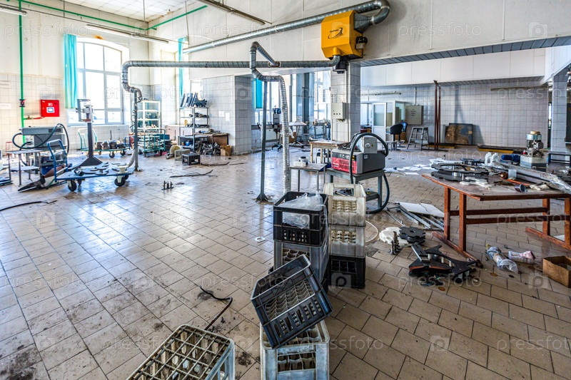 Промышленное оборудование в цеху старого заброшенного завода в Москве
