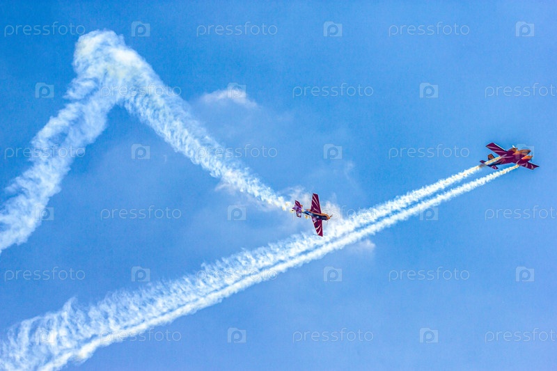 Пилотажная группа «Первый полет» выполняет показательные полеты на поршневых самолетах